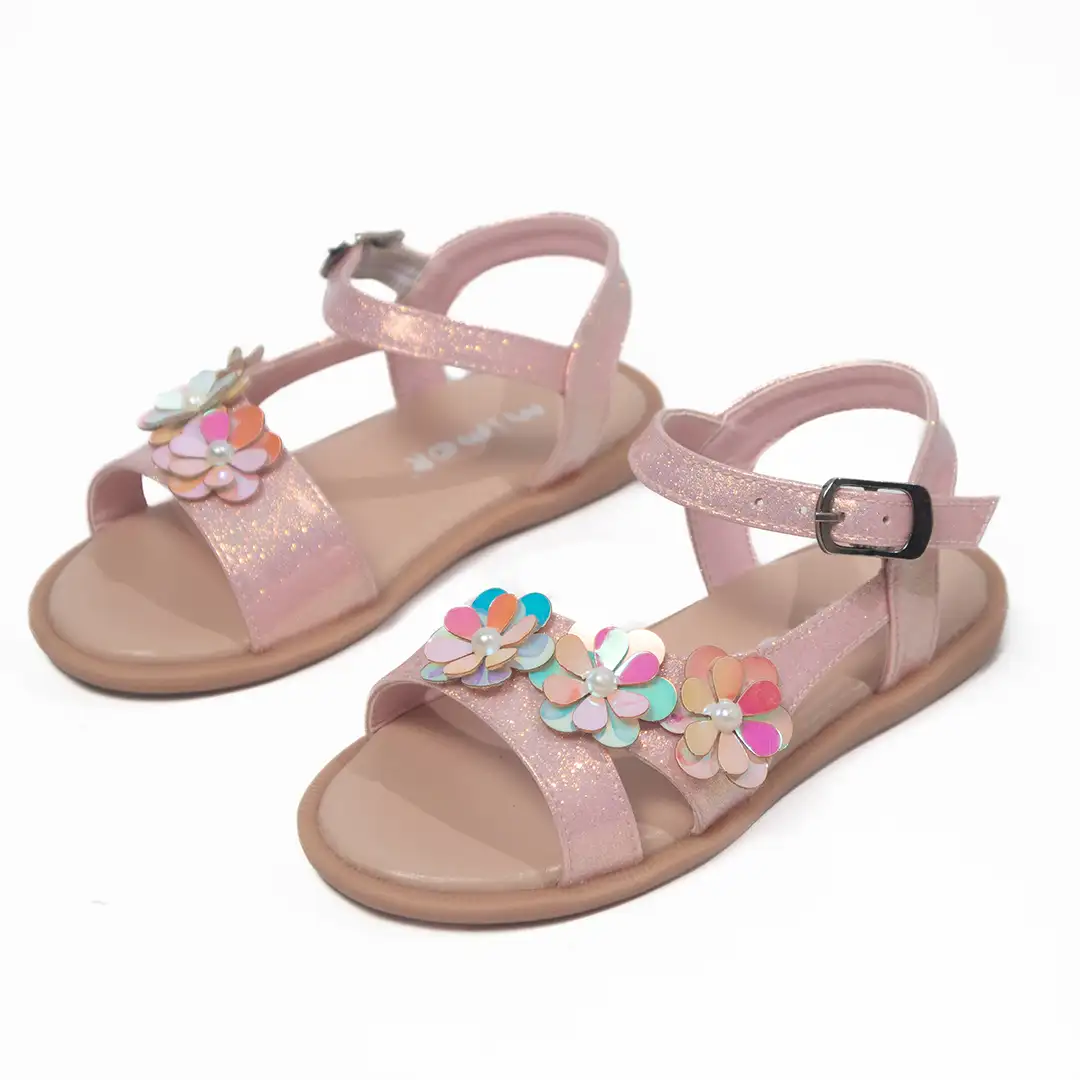 Estas sandalias rosadas brillantes combinan estilo y encanto con un diseño único adornado con flores multicolores de acabado iridiscente y detalle central de perlas. La estructura de la sandalia cuenta con una correa frontal ancha que garantiza comodidad y sujeción, mientras que la correa ajustable con hebilla metálica permite un calce personalizado y seguro. Su suela acolchada beige proporciona una pisada suave y confortable, ideal para largos periodos de uso. Perfectas para ocasiones especiales o para complementar atuendos diarios, estas sandalias son un balance entre elegancia y funcionalidad.